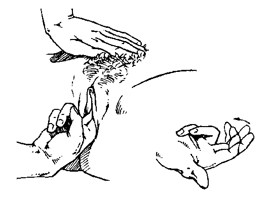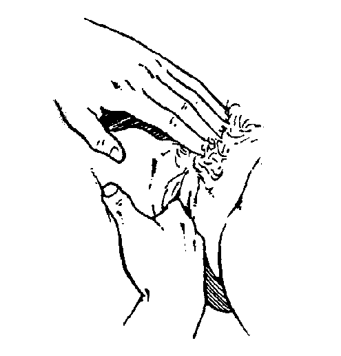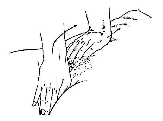 Массирование лобка ет ей удовольствие. Однако проявляйте осторожность и никогда не прикасайтесь к наружным половым органам женщины после того, как вы стимулировали анальную область, если после этого вы не помыли руки. Ладони между ее ног Речь пойдет о массаже, который никак не связан с часовым циферблатом. Сядьте верхом на свою партнершу или рядом с ней, поближе к нижней части ее живота и лицом к ступням. Положите ваши хорошо смазанные лубрикантом руки между ее ног таким образом, чтобы ваши пальцы находились ниже наружных половых органов женщины, но при этом не прикасались к анусу. Продвигайте руку вперед и вверх до самого живота, стараясь пальцами слегка раздвигать мягкие губы вульвы. Вторая рука следует сразу за первой и в точности повторяет все ее движения. Это похоже на движения собаки, которая роет нору в саду, только не так быстро. Простите за «собачье» сравнение.